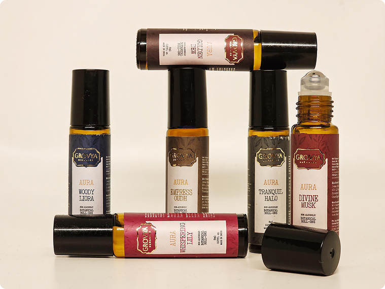 Discover our exclusive range of 6 organic roll-ons crafted with care to refresh, soothe, and energize your senses, wherever you go. Each variant is packed with pure, natural ingredients and designed for easy, mess-free application. Perfect for everyday moments of calm, confidence, and care.